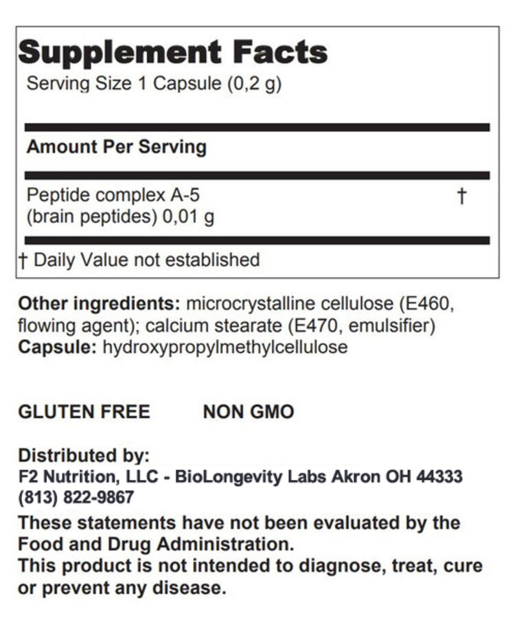 - Amount Per Serving: Peptide complex A-5 (brain peptides) 0.01 g â€